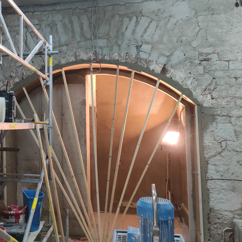 Ebenso das Mauern mit Natursteinen, Estrichverlegung, Kellerabdichtungen, kleinere Fliesenarbeiten.