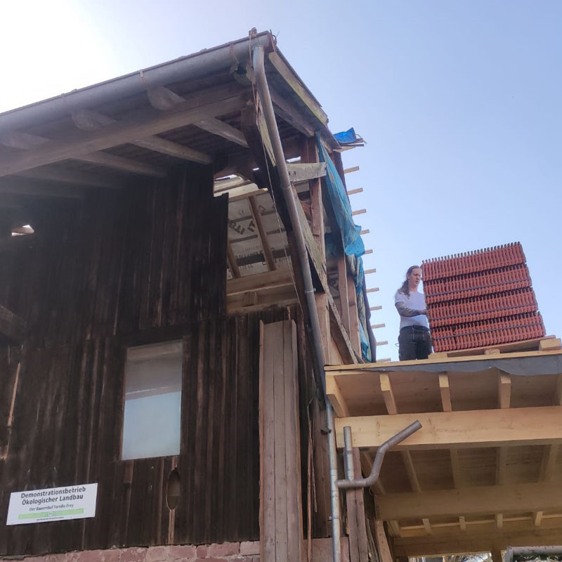 Zu meinem Repertoire gehört der Lehmbau, zum Beispiel das Mauern mit Lehmsteinen, Lehmwickeln oder Stampflehm.